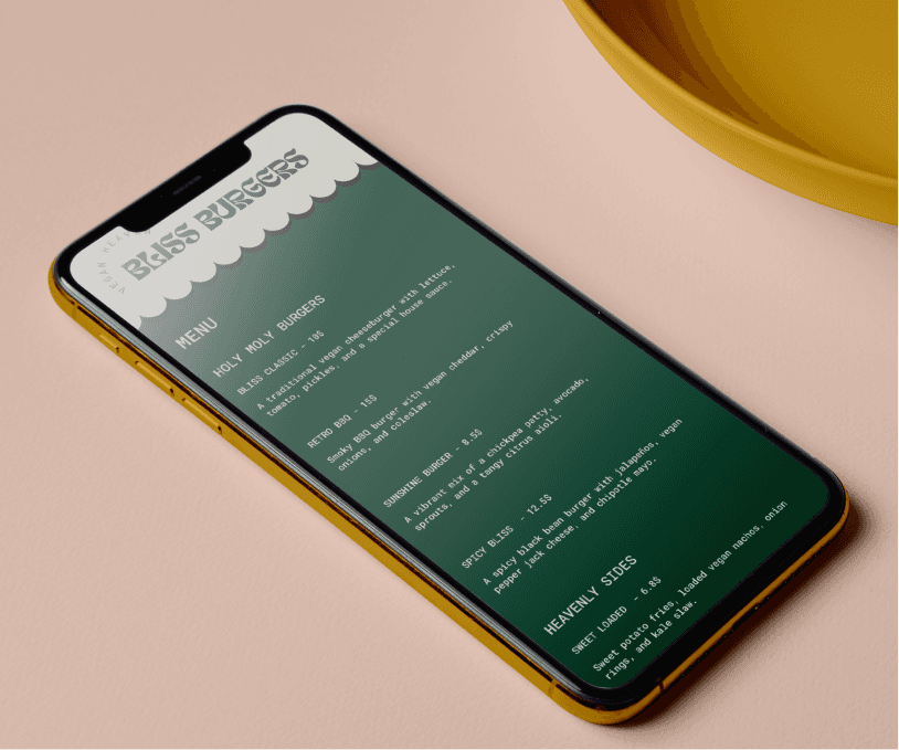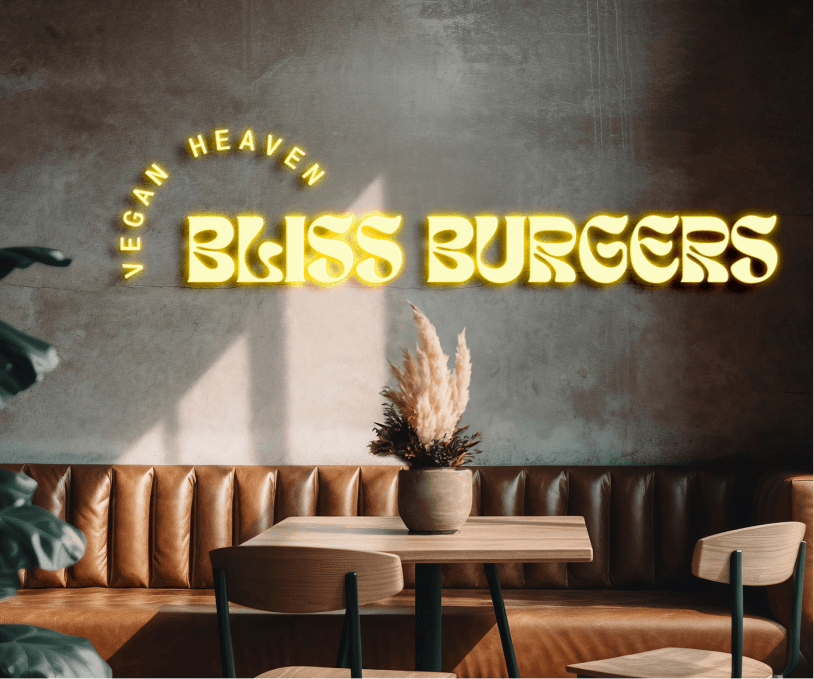 Bliss Burgers needed a distinctive identity that felt nostalgic yet fresh—capturing classic diner warmth while signaling premium, modern, plant‑based food. The brand had to translate seamlessly from signage and interiors to packaging, menus, and social.
